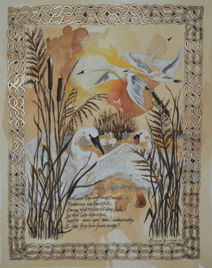 Celtic Swans #1 Type: Ink, Water Colour Celtic Swans, Poem, 2016 Medium Water colour and Ink Calligraphy Size A3 Private Commission Related Published by sheenafurlong View all posts by sheenafurlong