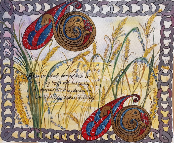Fields of Barley Type: Ink, Water Colour Fields of Barley Water colour/ calligraphy 2019 Water colour, enamel, ink private commission Related Published by sheenafurlong View all posts by sheenafurlong